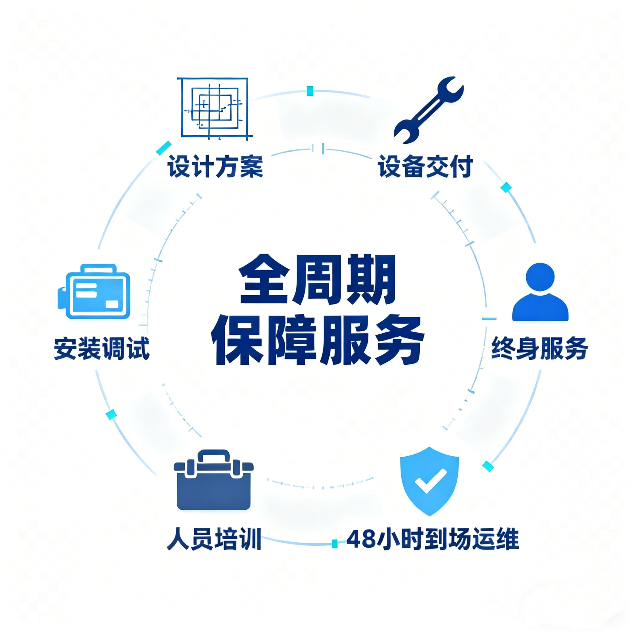 從設(shè)計(jì)方案到設(shè)備交付 全周期保障提供安裝調(diào)試、人員培訓(xùn)、48 小時(shí)到場(chǎng)運(yùn)維等終身服務(wù)。