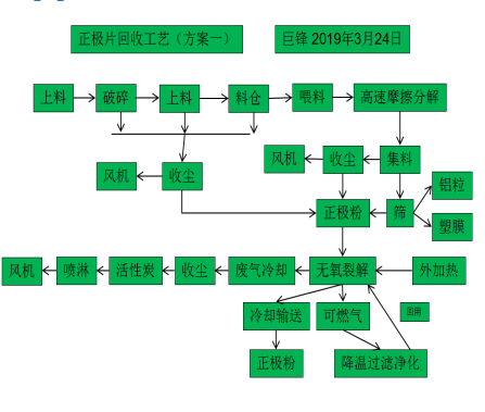 2、綜合分選循環(huán)風(fēng)系:揮發(fā)后鋰電物料進(jìn)綜合分選可把鋰電池分選為4類①磁性物(鐵和鎳)②塑料隔膜③銅塊鋁塊不銹鋼殼體等④正負(fù)極片料;極片直接進(jìn)摩擦脫粉設(shè)備,分選風(fēng)為全循環(huán)使用;把少量排出廢氣進(jìn)裂解燃燒系統(tǒng)進(jìn)行補(bǔ)充氧用。