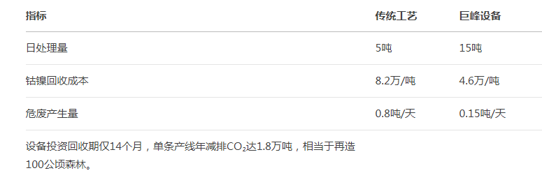 日處理量提升了200%,鈷鎳回收成本降低了44%,危廢產生量降低了81%。