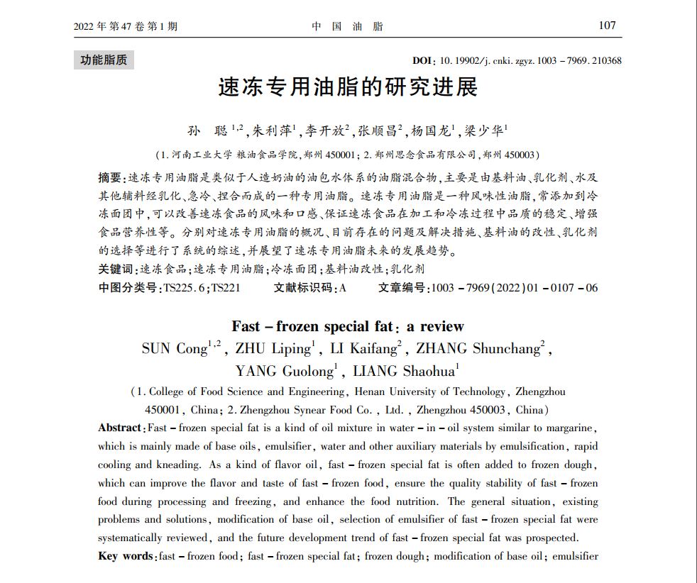 博士后孫聰在站期間,結合生產進一步完善了速凍食品專用油脂研究,改善目前產品中存在的反式酸、硬度高、熔點高、營養單一等問題,旨在開發品質優良的健康營養型速凍食品專用油脂,以滿足多樣化的市場需求和消費者對高品質生活的追求。公司根據行業情況,結合生產實踐進行了很多課題研究,對原料特性、速凍機理、產品質構、天然食品添加劑等領域進行探索性研究。