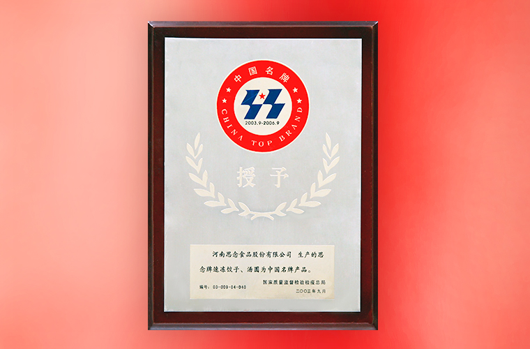 9月,思念牌速凍餃子、湯圓被國家質量監督檢疫總局授予“中國名牌產品”。