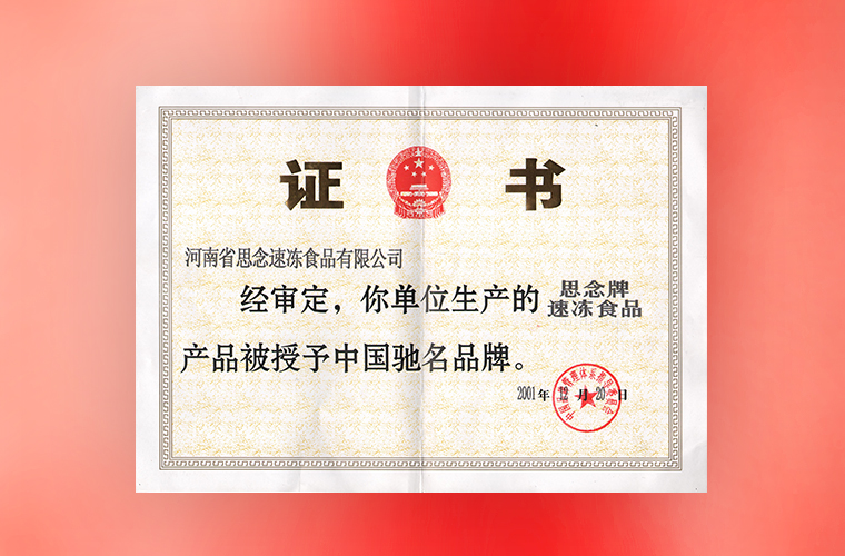 12月,思念食品被中國品牌管理體系指導委員會授予“中國馳名品牌”。