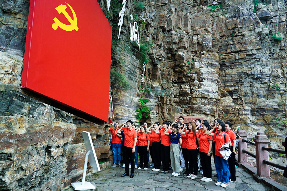 在青年洞,宋佳書記帶領(lǐng)全員面對(duì)黨旗,重溫入黨誓詞,表達(dá)永遠(yuǎn)跟黨走、積極踐行黨員責(zé)任和義務(wù)、發(fā)揮黨員示范引領(lǐng)作用的堅(jiān)定信念。